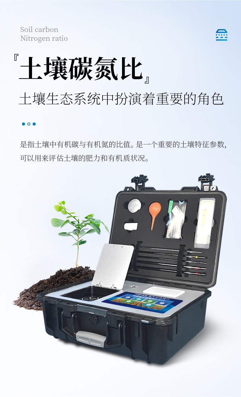 土壤碳氮比的意義在于提供有關土壤養分循環和有機質分解的信息。低碳氮比通常表示土壤中有機質的降解速度較快,有機氮相對較高,土壤肥力可能較高。高碳氮比通常表示土壤中有機質分解速度較慢,有機氮相對較低,土壤肥力可能較低。一般來說,土壤碳氮比的典型范圍通常在10:1到20:1之間。不同土質類型會對土壤碳氮比產生影響。